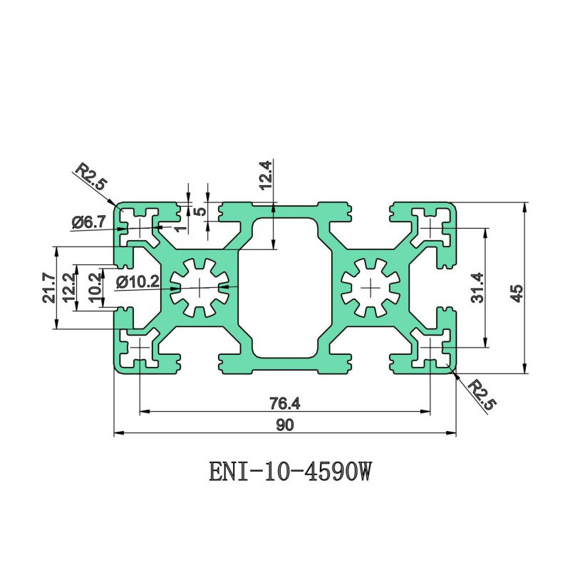 E&I-10-4590 T-slot aluminum profile, slot width 10mm, specification 45mm×90mm, anodized, smooth surface and strong corrosion resistance, suitable for various industrial environments. With its excellent fatigue resistance and load-bearing capacity, E&I-10-4590 is particularly suitable for high-load, high-frequency operation industrial applications, such as mechanical brackets, automation equipment supports and large industrial frames.