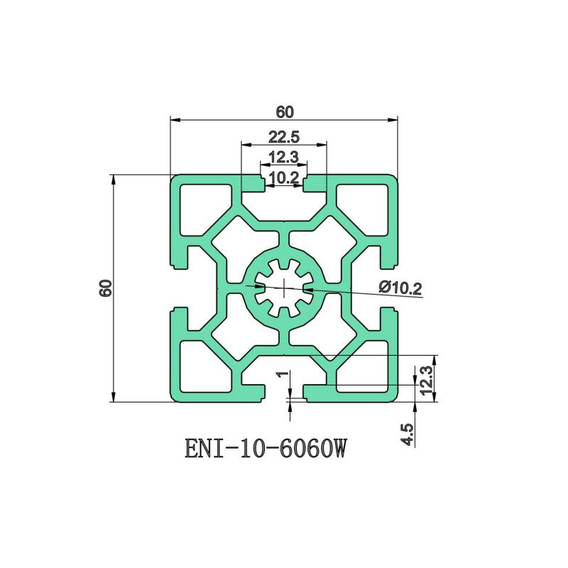 T-slot aluminum profile E&I-10-6060A | High-strength industrial aluminum | Modular frame design | Automation equipment bracket